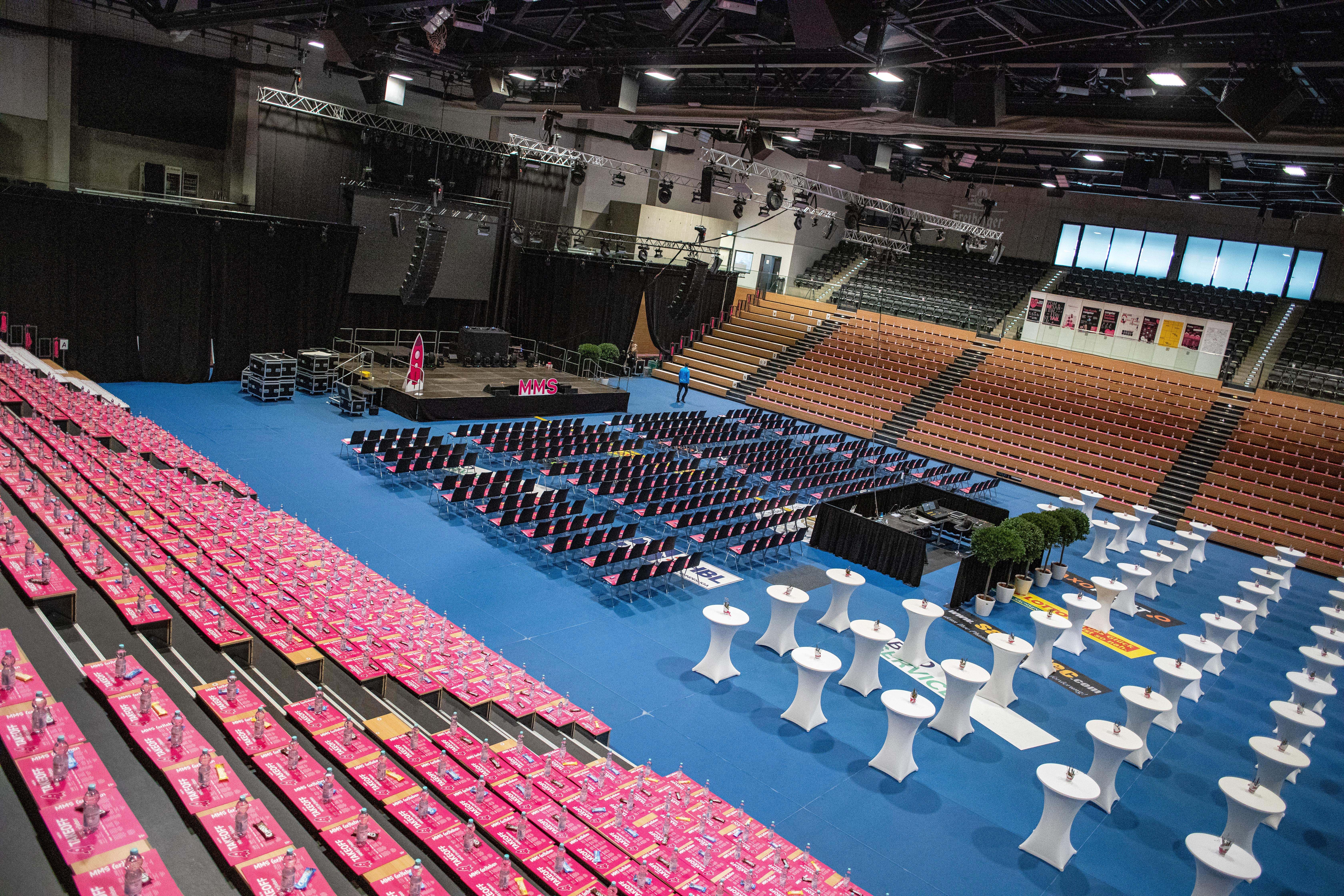 Im Herzen des Geschehens: Die Bühne und das Plenum als zentraler Anlaufpunkt für alle Teilnehmenden.